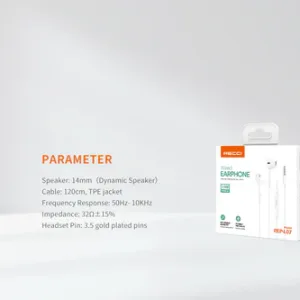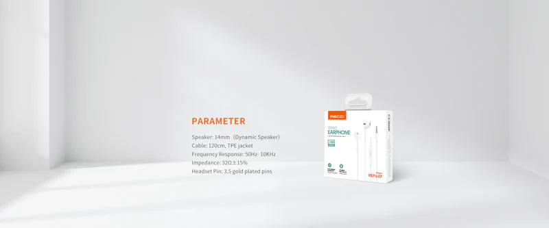 Recci REP‑L07 White are durable 3.5 mm wired in-ear earphones featuring 14 mm dynamic drivers, tangle-resistant 120 cm cable, inline microphone, and remote.